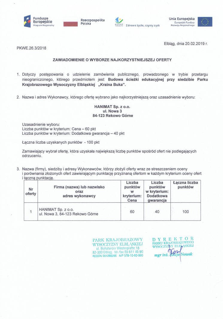 zawiadomienie o wyborze najkorzystniejszej oferty